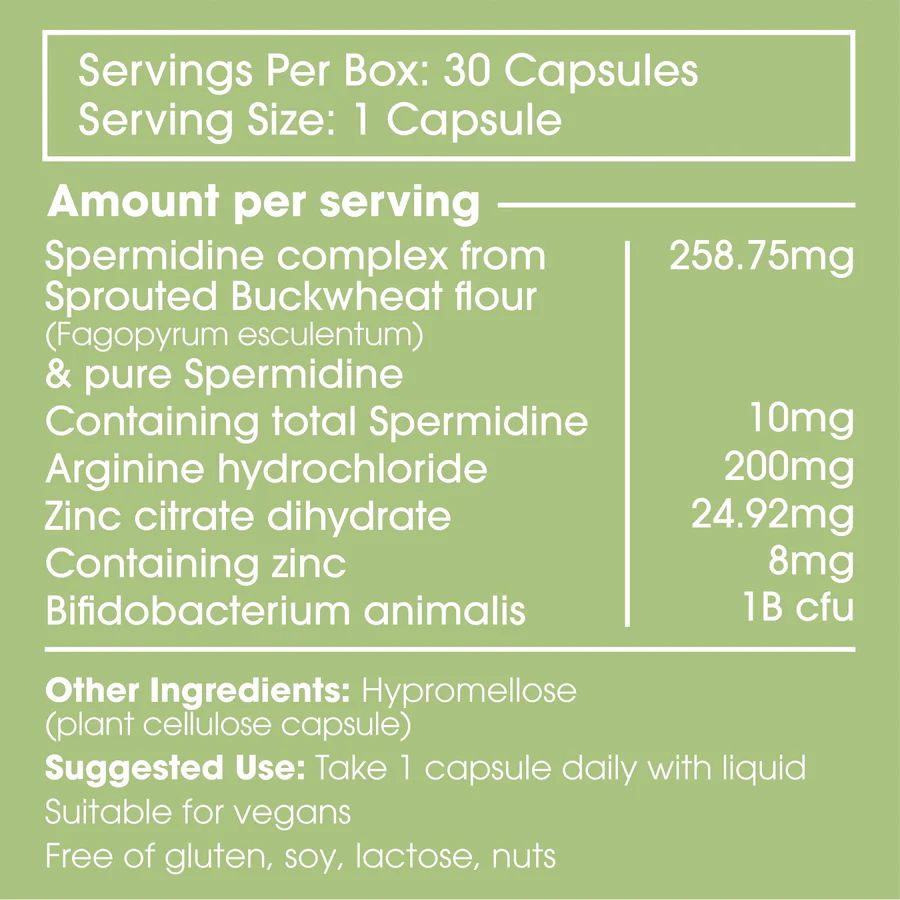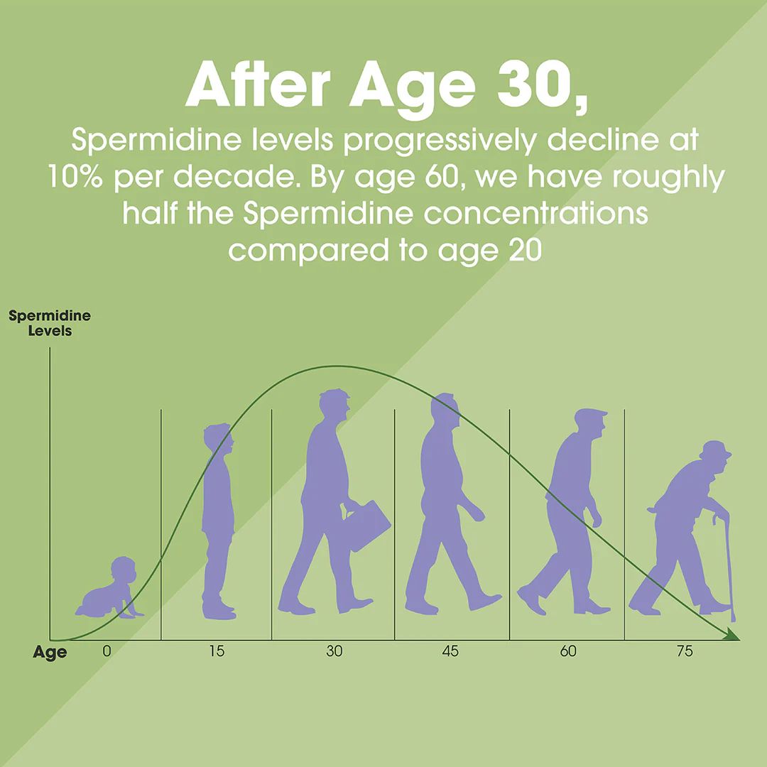 Spermidine levels decline with age. Replenish what your body needs to feel sharper, look fresher, and age confidently.